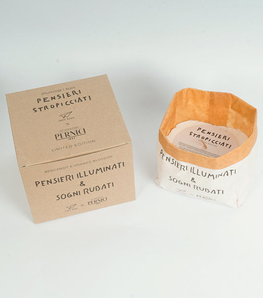 Candela Profumata "PENSIERI ILLUMINATI E SOGNI RUBATI" alla fragranza "Bergamotto e Fiori d'Arancio"