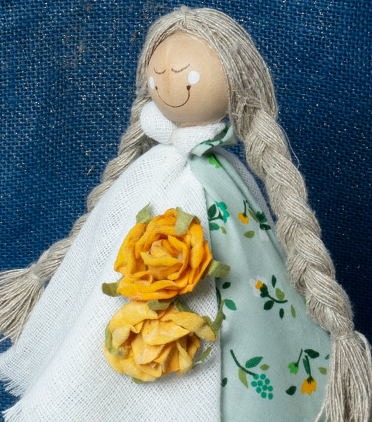 "Anna la Bambola" in legno con cotone, spago, Rose sintetiche, corda e fil di ferro