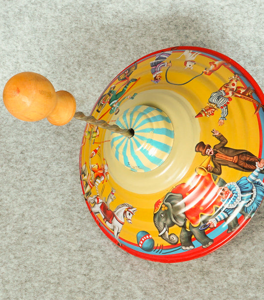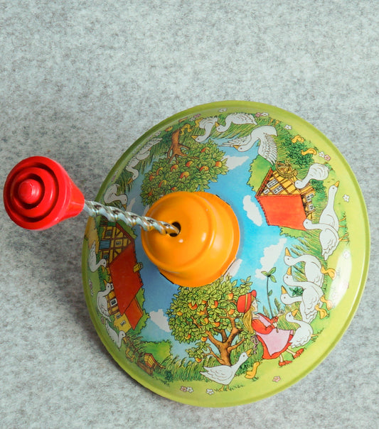 "Trottola Vintage a Carica con le Paperelle" in plastica e metallo