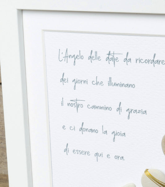 Cornice in legno con un Angioletto, sassi, fil di ferro ed un aforisma