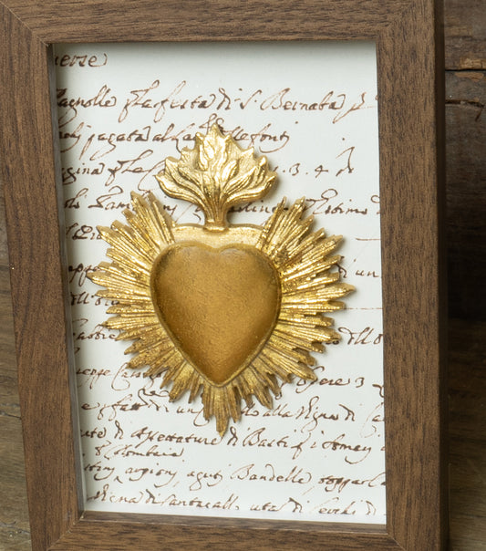 "Il Cuore Ex Voto Dorato nella Cornice" in resina e legno con carta