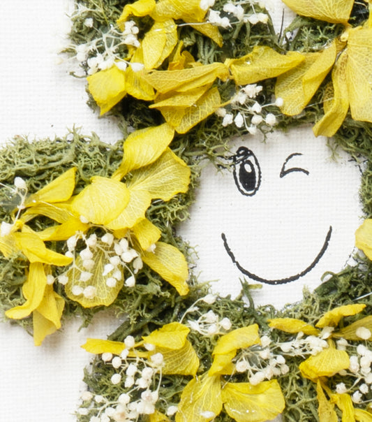 Quadro in tela con un Fiore in Muschio stabilizzato e fiori essiccati