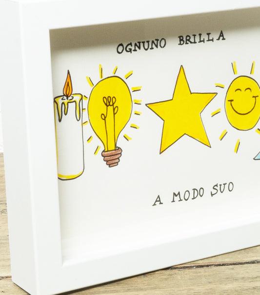 Cornice in legno "OGNUNO BRILLA A MODO SUO" con Disegni