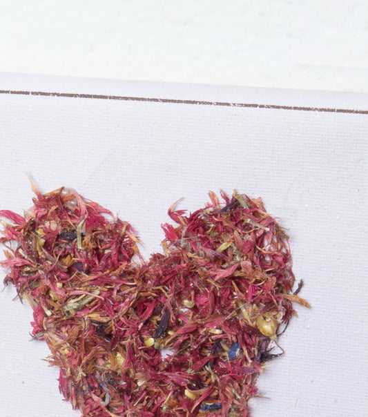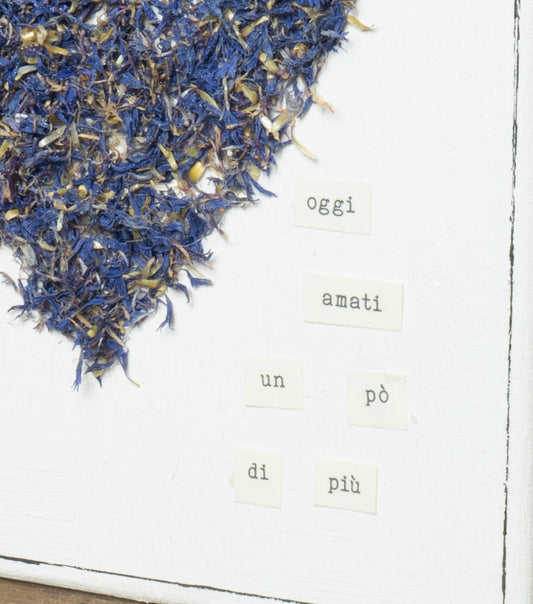 Quadro in tela "oggi amati un po di più" con un Cuore di fiori essiccati