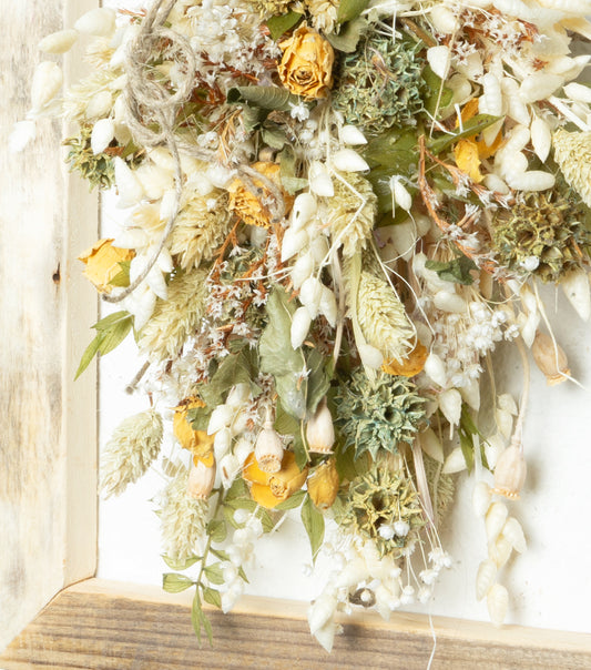 "Il Bouquet nella Cornice" in legno con fiori essiccati, stabilizzati e spago