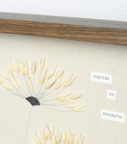 Cornice in legno "esprimi un desiderio" con Soffioni, Avena e lino
