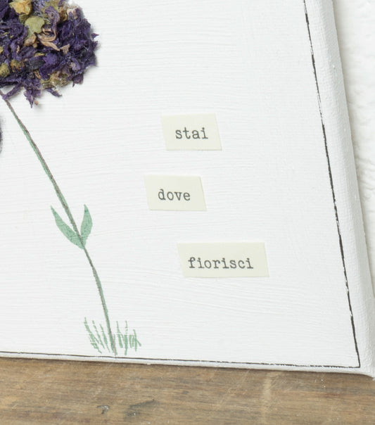 Quadro in tela "stai dove fiorisci" con un Fiore di fiori essiccati e Disegni