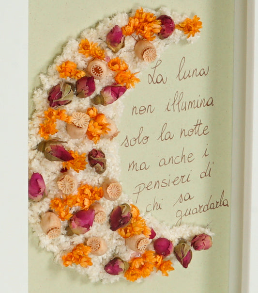 Cornice in legno "risplendi sempre" con una Mezzaluna di fiori essiccati