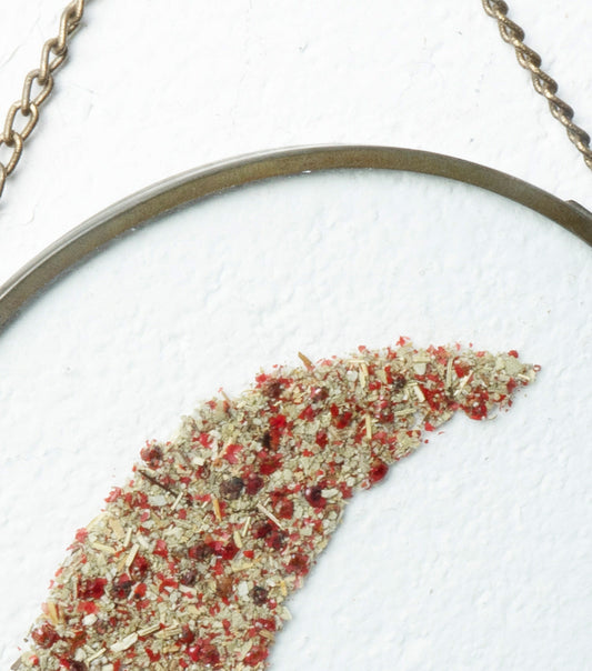 Cornice in vetro e ottone con una Mezza Luna di fiori essiccati