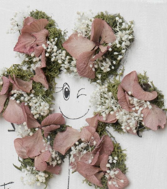 Quadro in tela "FIORISCI ogni GIORNO" con un Fiore in Muschio stabilizzato e fiori essiccati