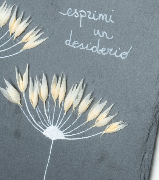 Lavagnetta "esprimi un desiderio" in ardesia con Soffioni ed Avena