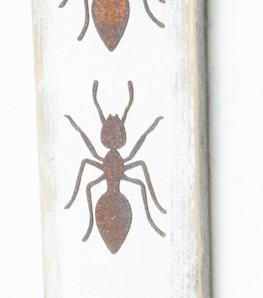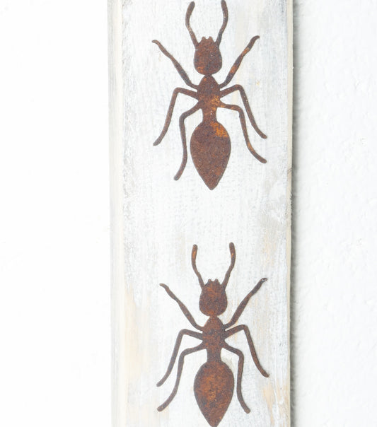 "Le 2 Formiche in Cammino" in corten sulla Tavola in legno