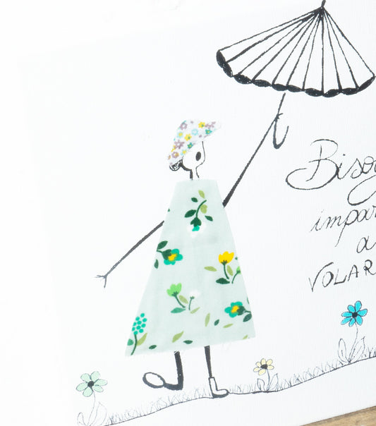 Quadro in tela "Bisogna imparare a VOLARE..." con Disegni e cotone