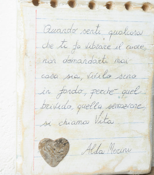 Tavoletta con un Cuore in legno e un aforisma di Alda Merini
