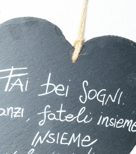 Lavagnetta a forma di un Cuore in ardesia con un aforisma di Massimo Gramellini