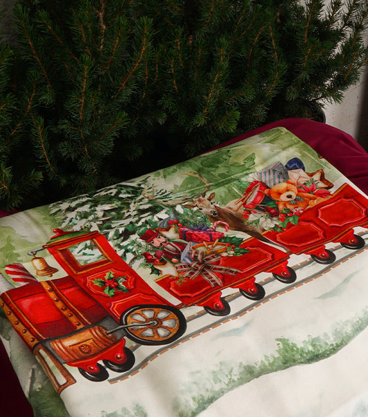 Tovaglia con il "Trenino Natalizio" in cotone 160x280