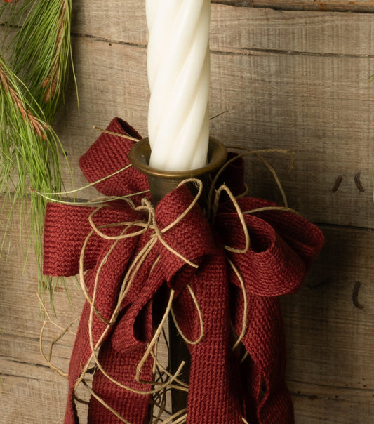 Candeliere Natalizio in ottone con una Candela, cotone e spago