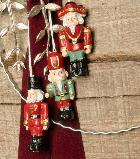 Decorazione Natalizia in metallo con i Pupazzetti in resina, rami di Felce ed Abete sintetici, pigne, velluto e spago