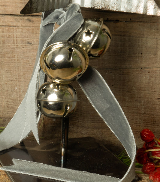 Alberello Natalizio in latta piccolo con Campanelli in metallo, velluto, metallo e fil di ferro