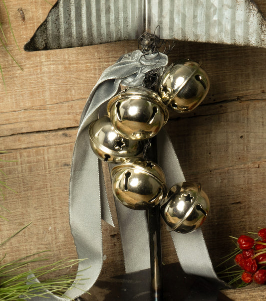 Alberello Natalizio in latta grande con Campanelli in metallo, velluto, metallo e fil di ferro