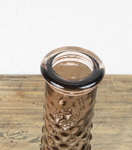 Ampolla porta-fiori in vetro decorato, martellato e colorato rosa