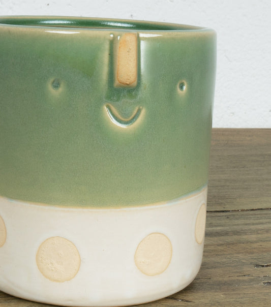 "Vasetto con il Volto che Sorride" in cotto e ceramica