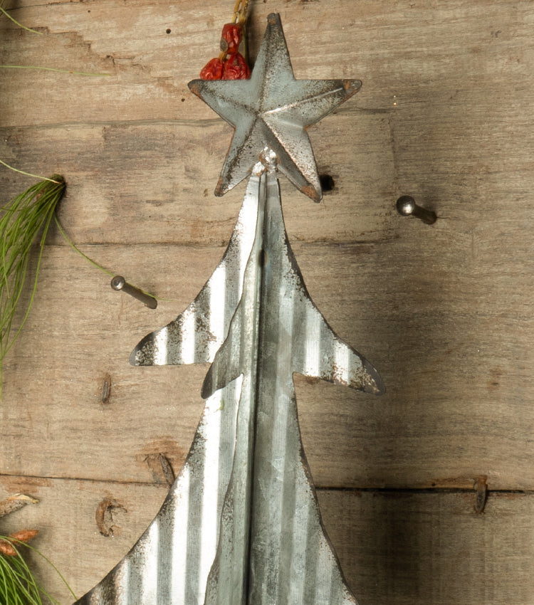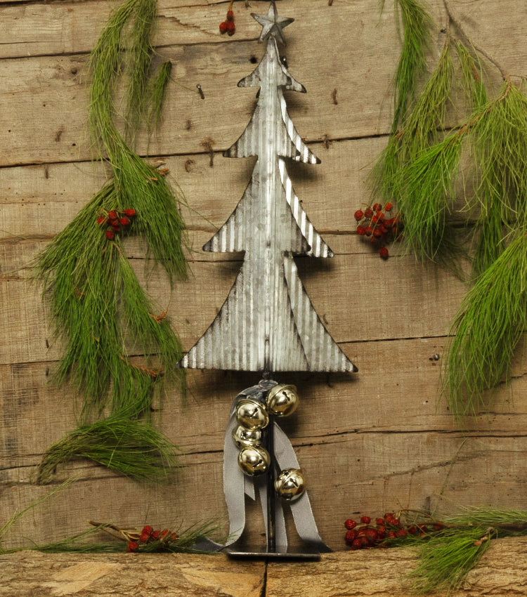 Alberello Natalizio in latta grande con Campanelli in metallo, velluto, metallo e fil di ferro