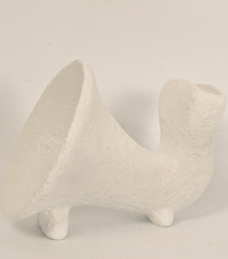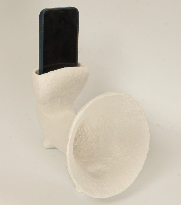 Altoparlante da appoggio bi-facciale realizzata interamente in cotto decorato ricoperto da noi con cartapesta lavorata dallo stile moderno.
