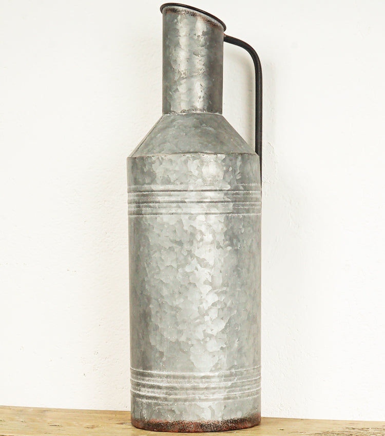 Brocca da appoggio bi-facciale realizzata in latta e metallo entrambi lavorati dallo stile vintage ed invecchiato.