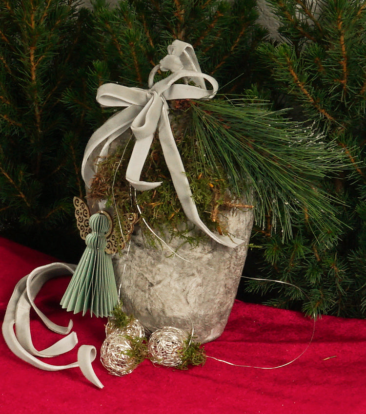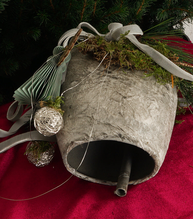 Campanaccio Natalizio in legno con un Angioletto, muschio e rami di Abete