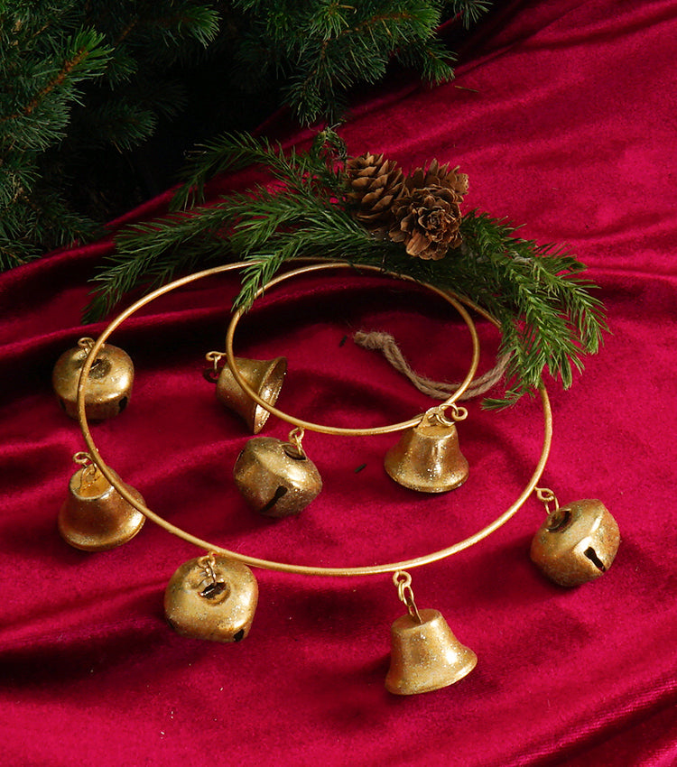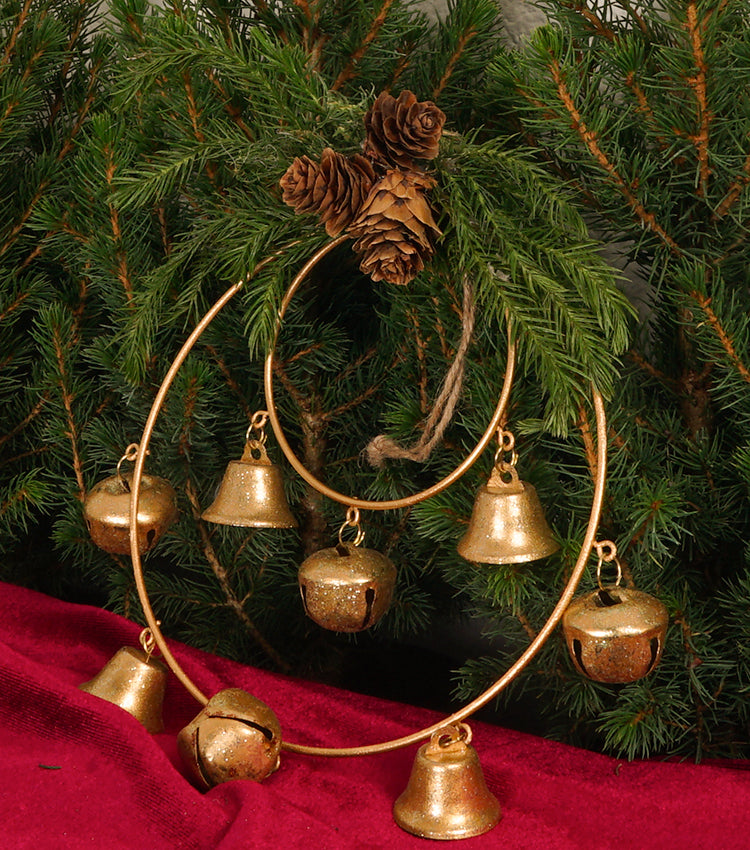 Campanelli Natalizi in metallo con Pigne e rami di Abete
