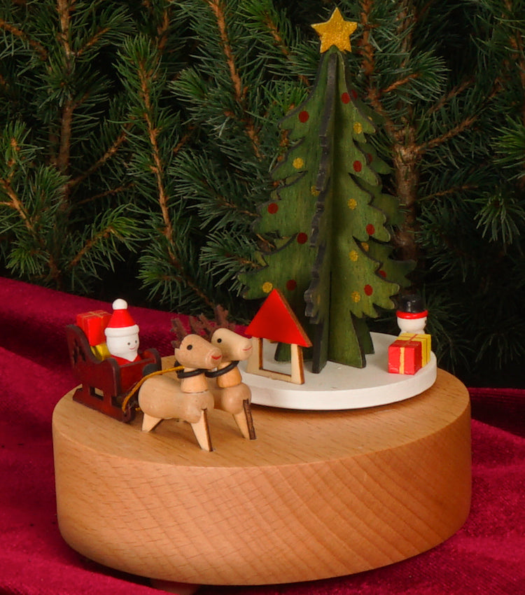 Carillon Natalizio da appoggio realizzato interamente in legno decorato e dipinto di diverse colorazioni.