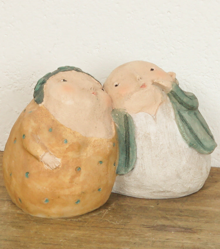 Coppia da appoggio bi-facciale realizzata interamente in resina decorata e dipinta di diverse colorazioni dallo stile vintage ed invecchiato.
