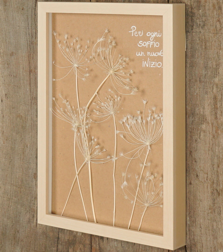 Cornice in legno "Per ogni SOFFIO un nuovo INIZIO." con i "Pizzi della Regina Anna" essiccati