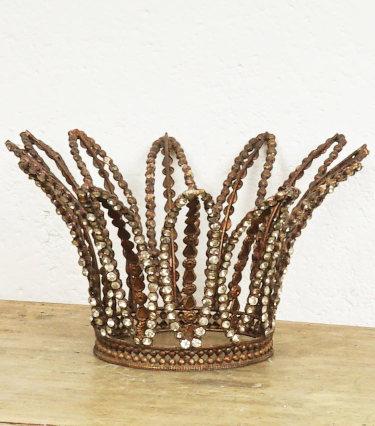 Corona da appoggio bi-facciale realizzata in metallo lavorato e dipinto dallo stile vintage ed invecchiato con Perline di vetro e Decorazioni.