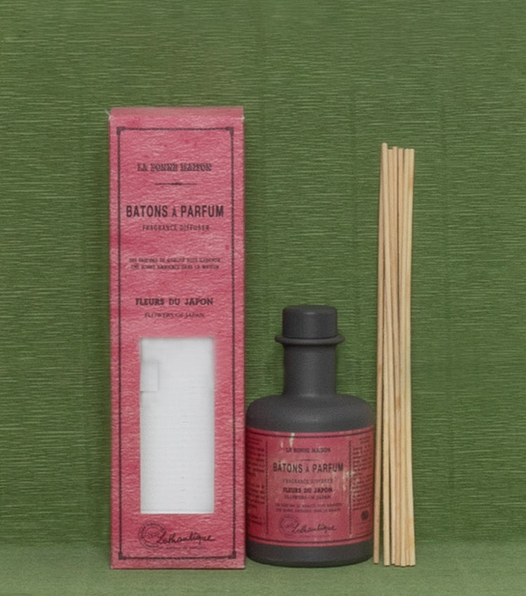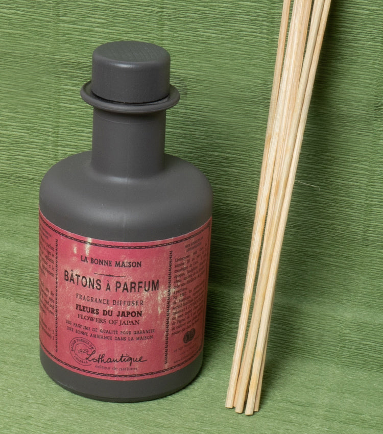 Fragranza d'Ambiente munita della scatola di carta con i Bastoncini di legno alla profumazione "Fiori del Giappone" da 200 ml della linea "Lothantique".