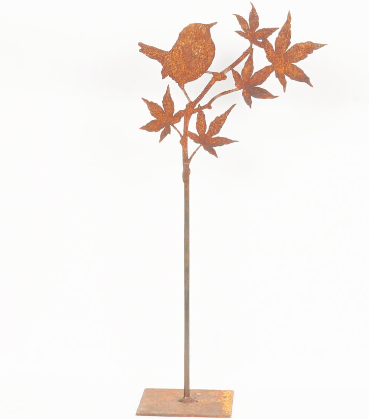"L'Uccellino sul Ramo" da appoggio bi-facciale realizzato interamente in acciaio cortine decorato dallo stile vintage ed invecchiato.