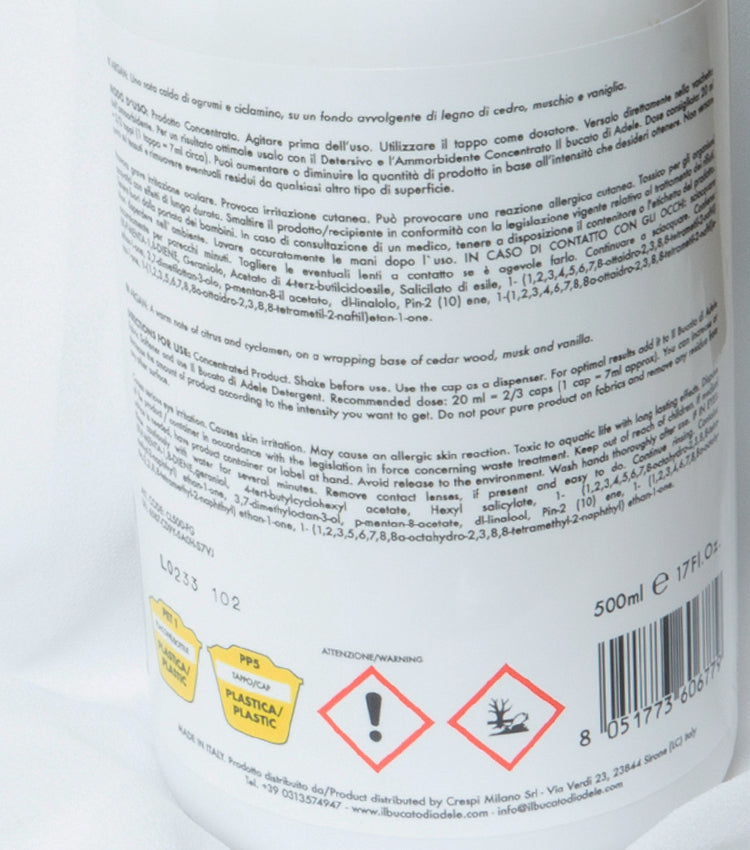 Profumatore per Bucato all'estratto "Argan" da 500 ml della linea "Il Bucato di Adele".