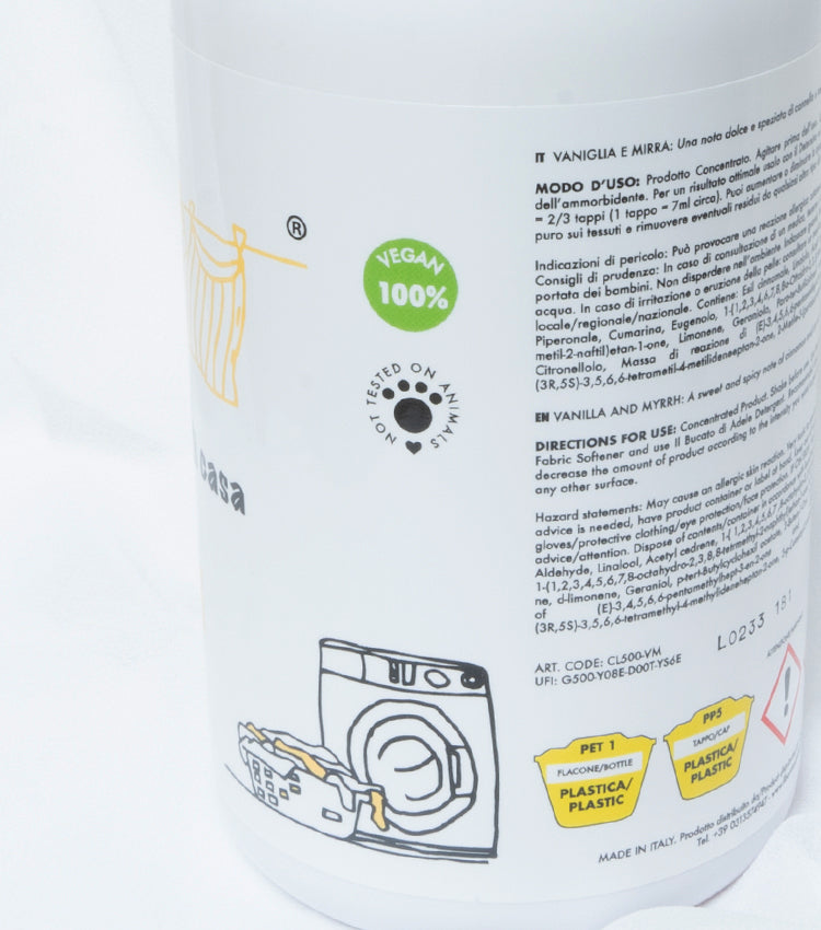 Profumatore per Bucato all'estratto "Vaniglia e Mirra" da 500 ml della linea "Il Bucato di Adele".