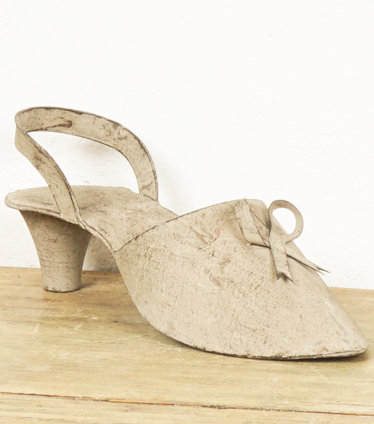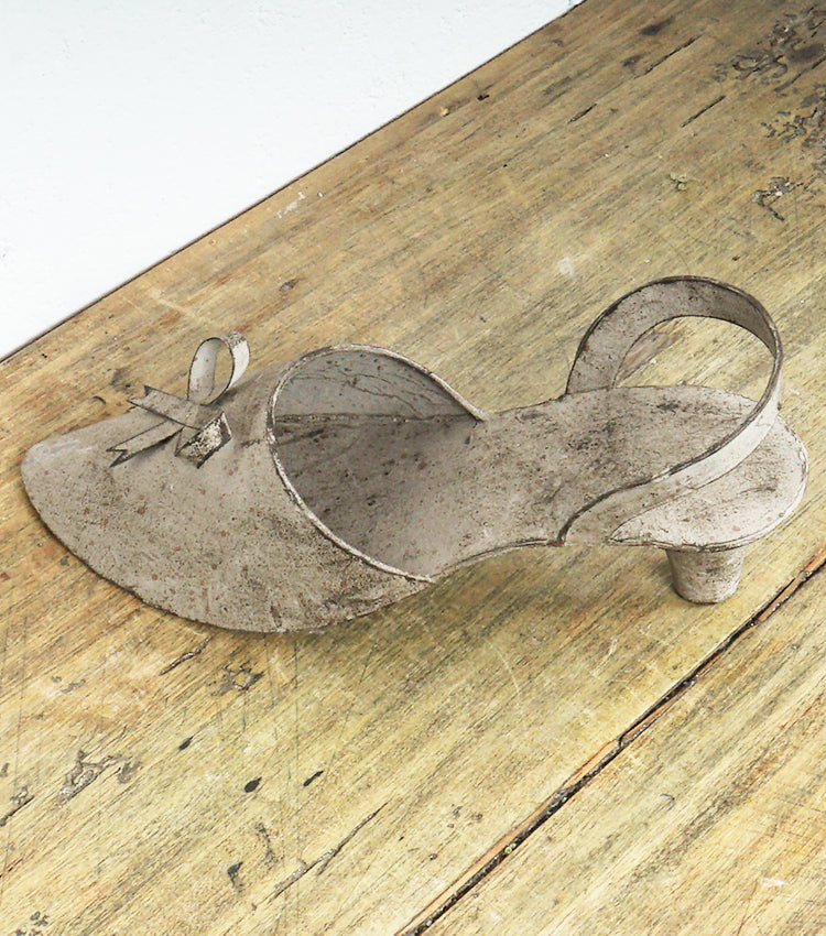 "Scarpetta Anticata" da appoggio bi-facciale realizzata interamente in metallo decorato e dipinto dallo stile vintage ed invecchiato.